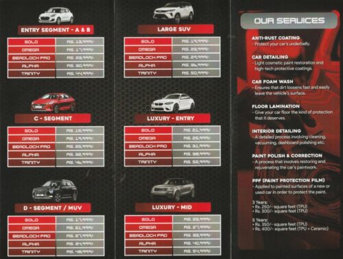 ceramic coating, paint protection films, paint sealant and wax, paint correction, interior detailing