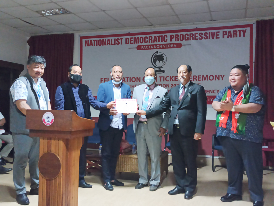 Yhokha, a former PRO to the Speaker of Nagaland Legislative Assembly, Vikho-o Yhoshu, was felicitated at the ticket ceremony at NDPP Office in Kohima in the presence of Nagaland Chief Minister Neiphiu Rio, Deputy CM Yanthungo Patton, State BJP President Temjen Imna Along and NDPP president Chingwang Konyak.