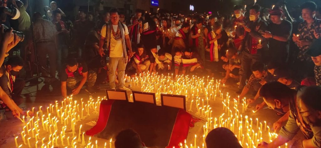 In a massive show of solidarity in memory of the three victims killed by armed assailants on March 22, several hundred people gathered at Super Market here Friday evening at the candlelight vigil organised by the Zeliang Students Union Dimapur (ZSUD).